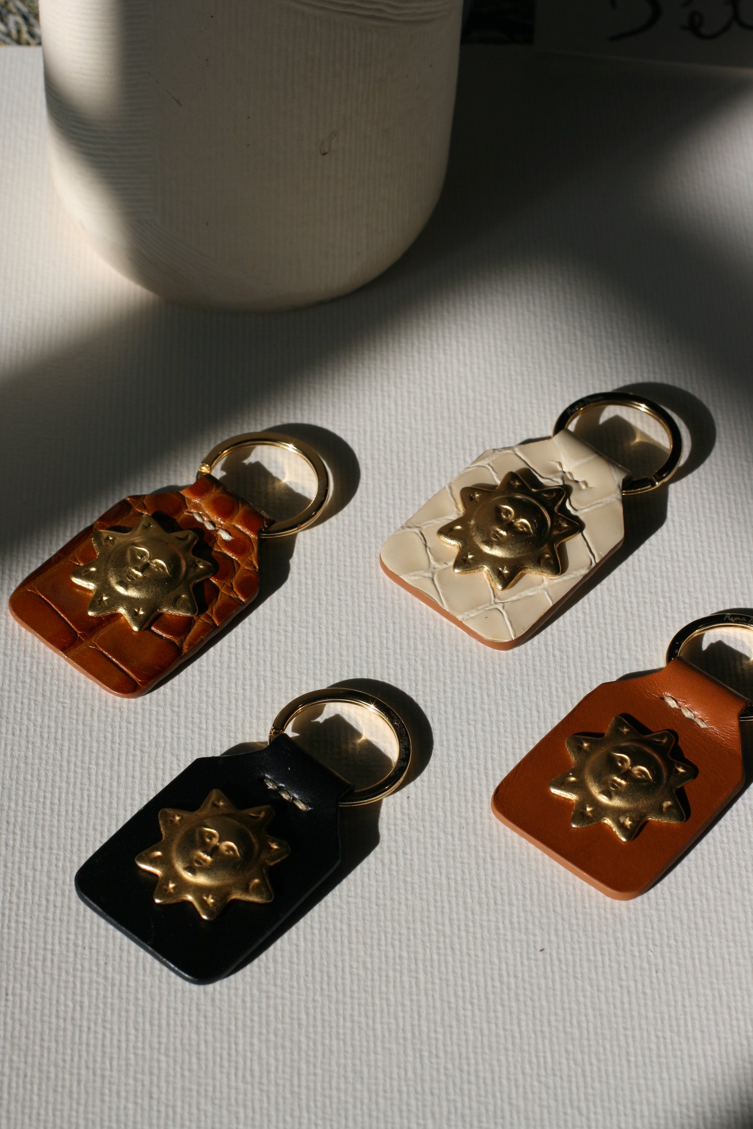 Leather Keychain with Sun Charm – Handmade in Lisbon