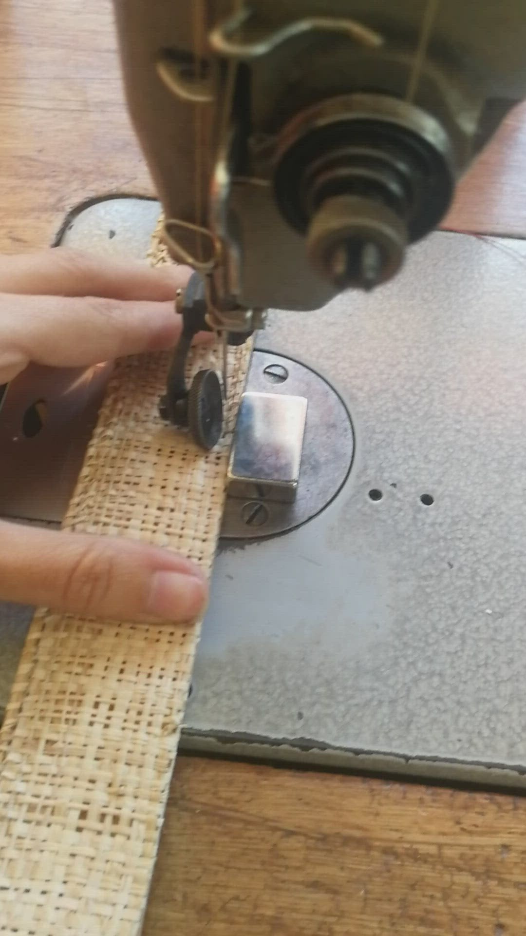 Second strap in camel veg-tanned leather, intentionally left raw and unlined.